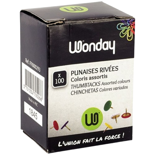 Boite de 100 punaises tête plate couleur