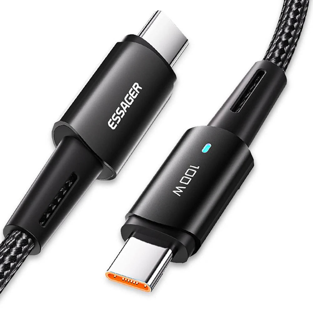Cable charge rapide USB-C/USB-C ESSAGER 100W PD 1m Noir/Noir