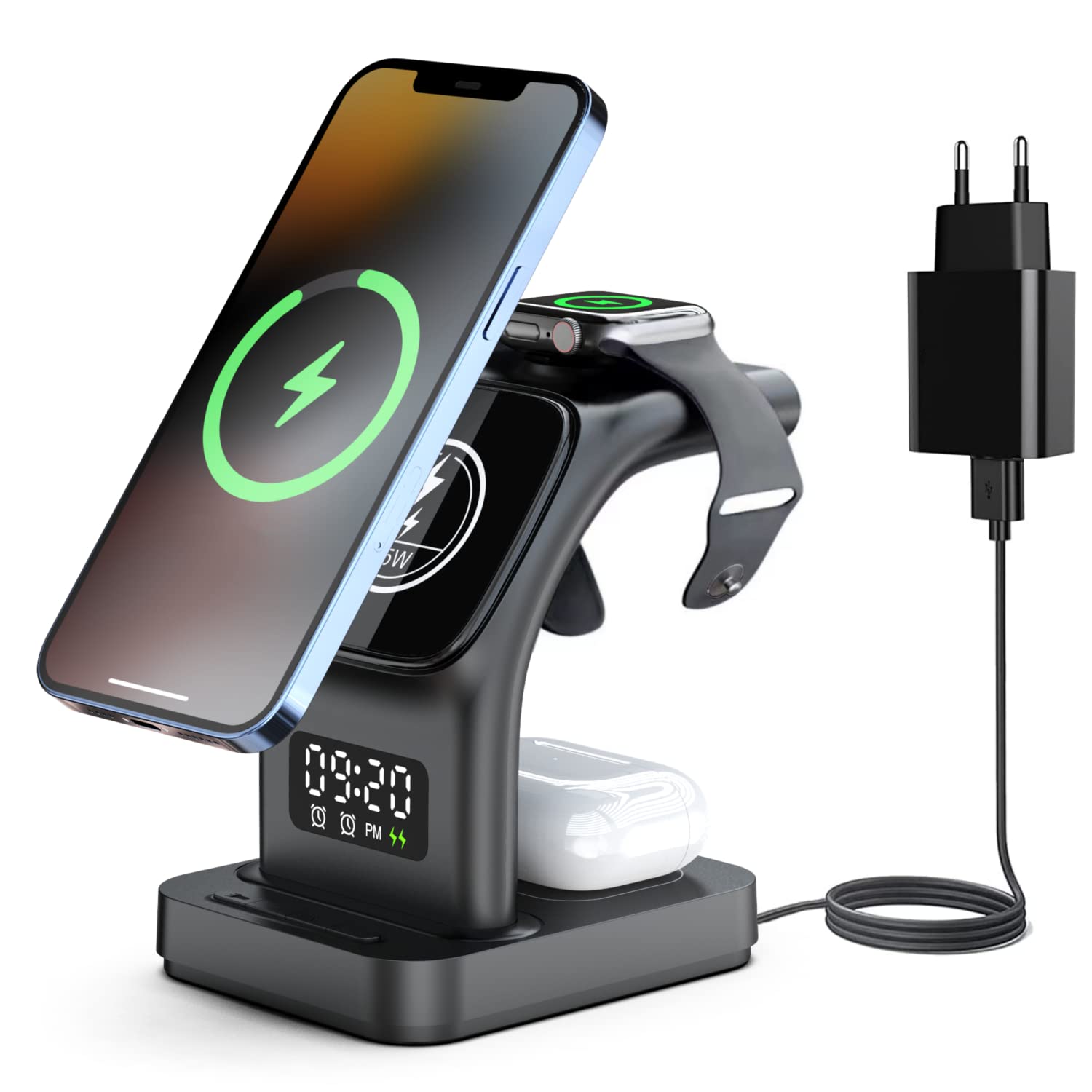 Chargeur rapide magnetique sans fil 5 en 1 pour Apple ou Samsung Noir