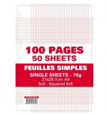 Feuilles mobiles perforées 100 pages 21x29.7cm 5X5